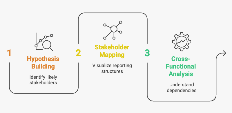 Before your first call, build a hypothesis of the buying committee. Use LinkedIn, company org charts, and insights from past deals to identify likely stakeholders. Look for titles, reporting structures, and cross-functional dependencies.