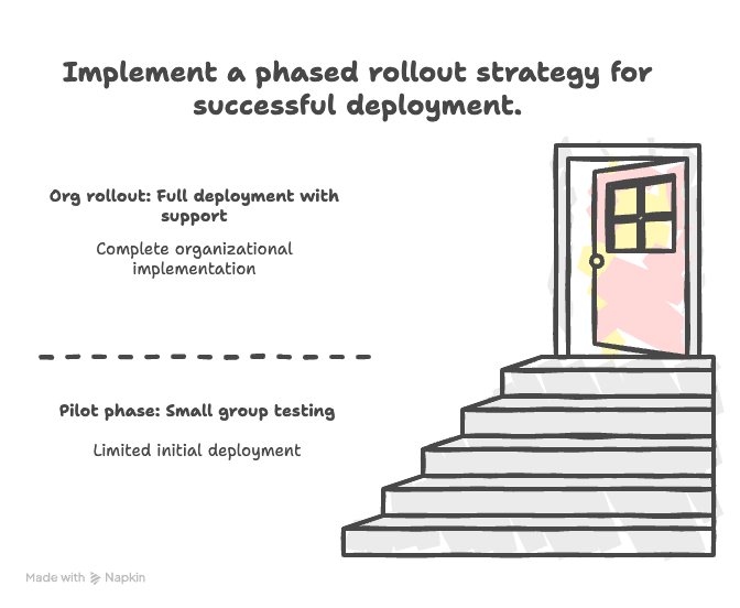 Locking in adoption requires both structure and culture. Provide manager toolkits with sample 1:1 agendas, deal review templates, and coaching guides. Identify peer champions from the pilot and scale phases to serve as local experts on their teams. Finally, ensure executive sponsorship is visible: when leaders reference AI in QBRs and pipeline reviews, adoption cascades naturally.